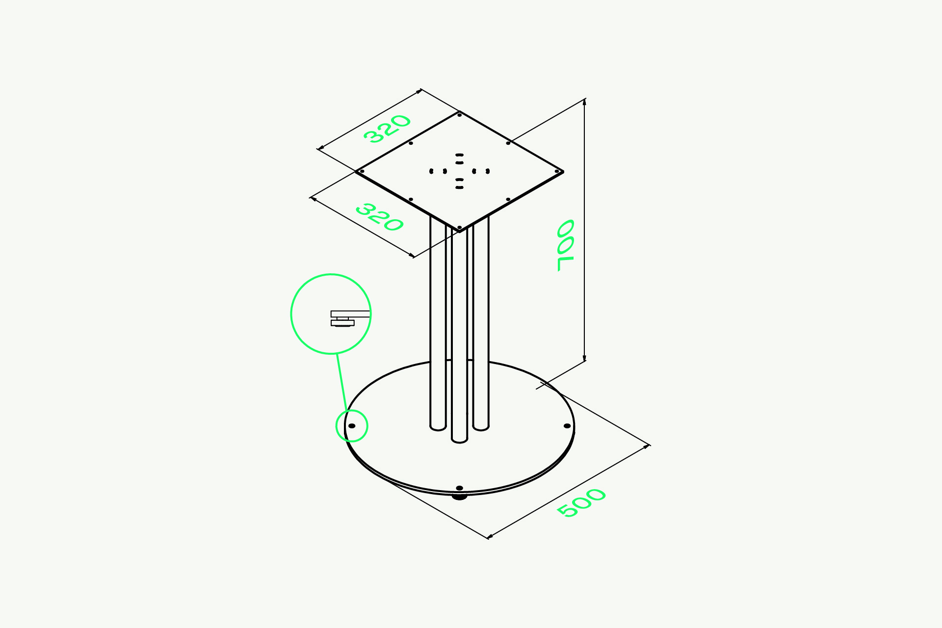Ідеальна для стільниць більшого діаметру, ця ніжка відрізняється нетиповим і оригінальним дизайном. Вона привертає увагу своєю унікальністю, додаючи інтер'єру ефектного акценту.