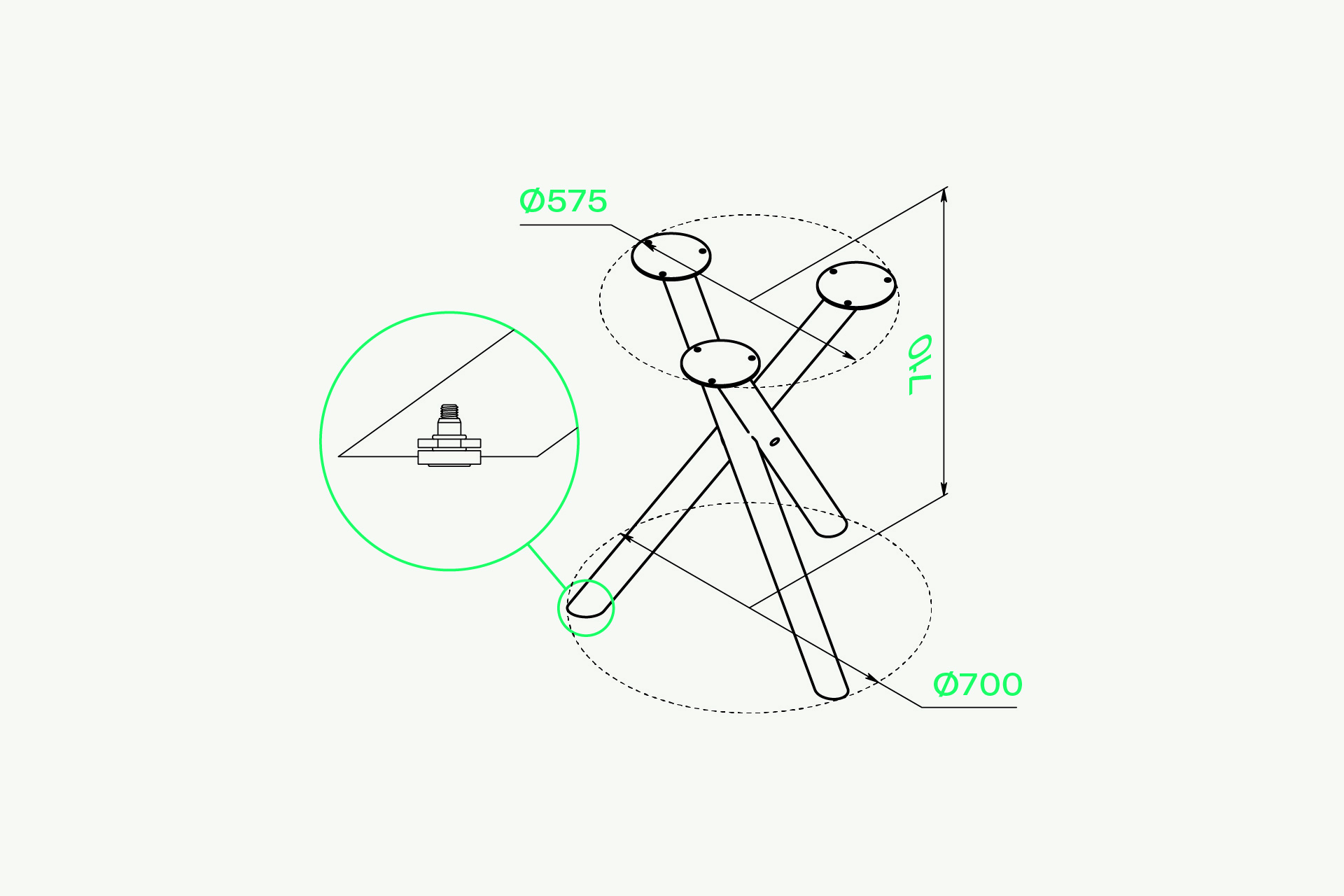 Ідеальна для невеликих круглих стільниць, ця ніжка пропонує оптимальний варіант для стільниць до 700 мм у діаметрі, гарантуючи надійність і стильний вигляд.